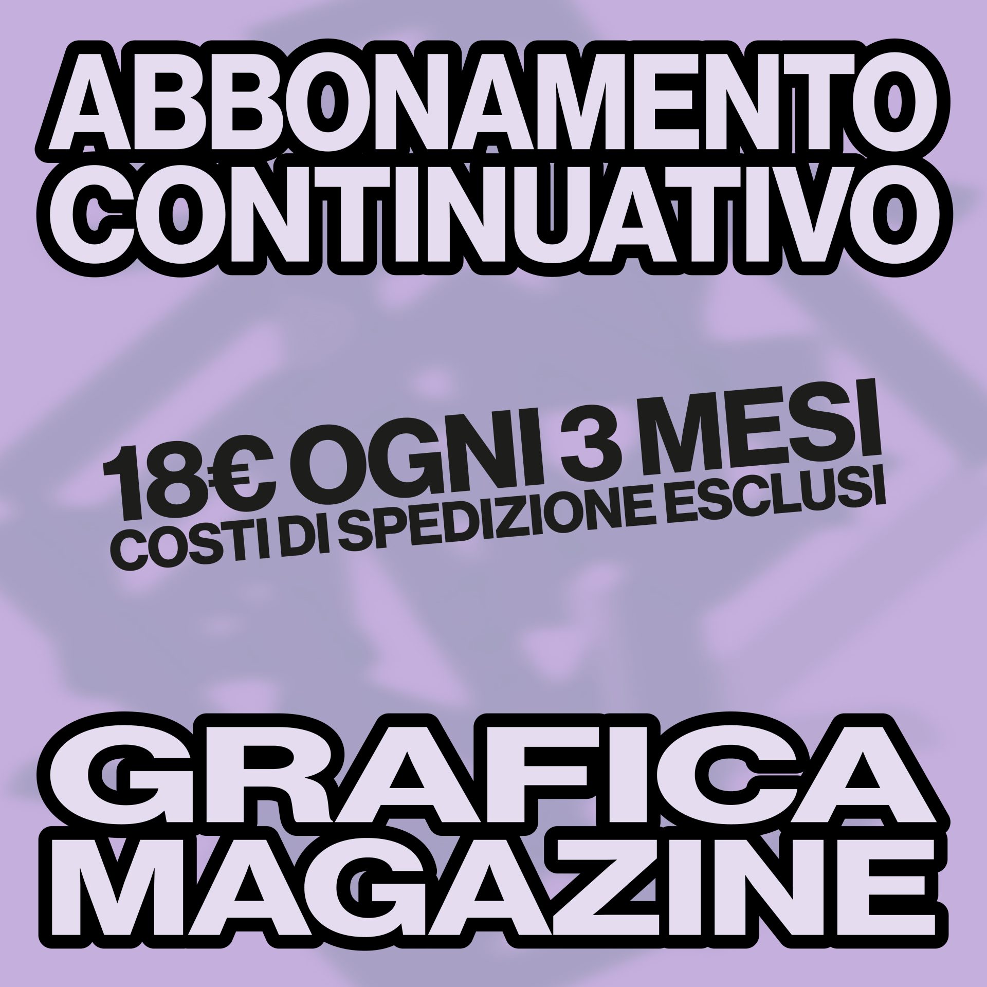 Sottoscrivendo l’abbonamento continuativo, pagherai ogni tre mesi 18 euro (più spese di spedizione, corriere con tracking) che ti saranno addebitati solo quando verrà spedita la tua copia del nuovo numero di Grafica Magazine.